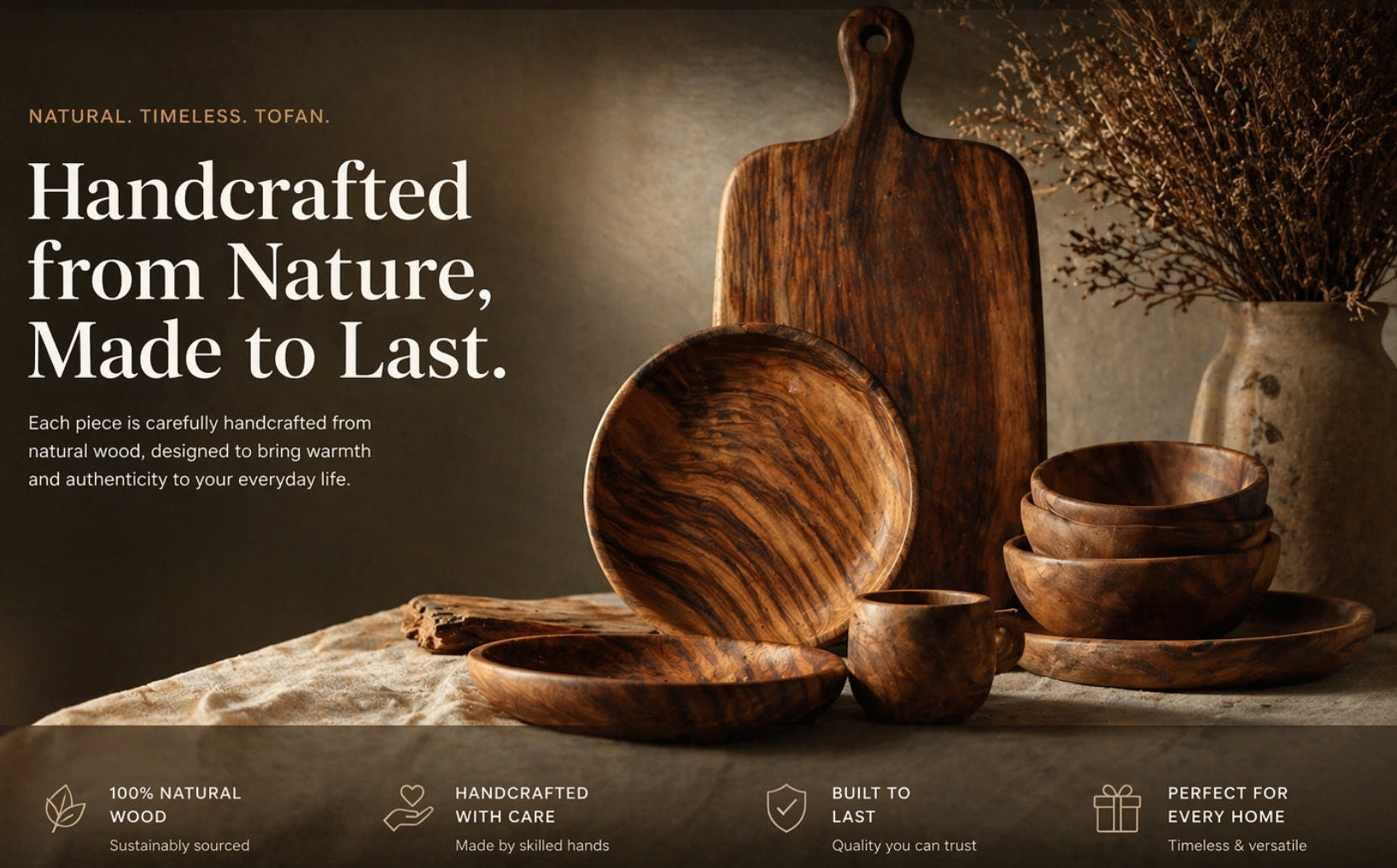 ABOUT TOFAN STOREYour destination for premium wooden products crafted to bring together natural beauty, durability, and timeless style. At Tofan Store, we carefully select and create pieces that add warmth, functionality, and elegance to your everyday life.